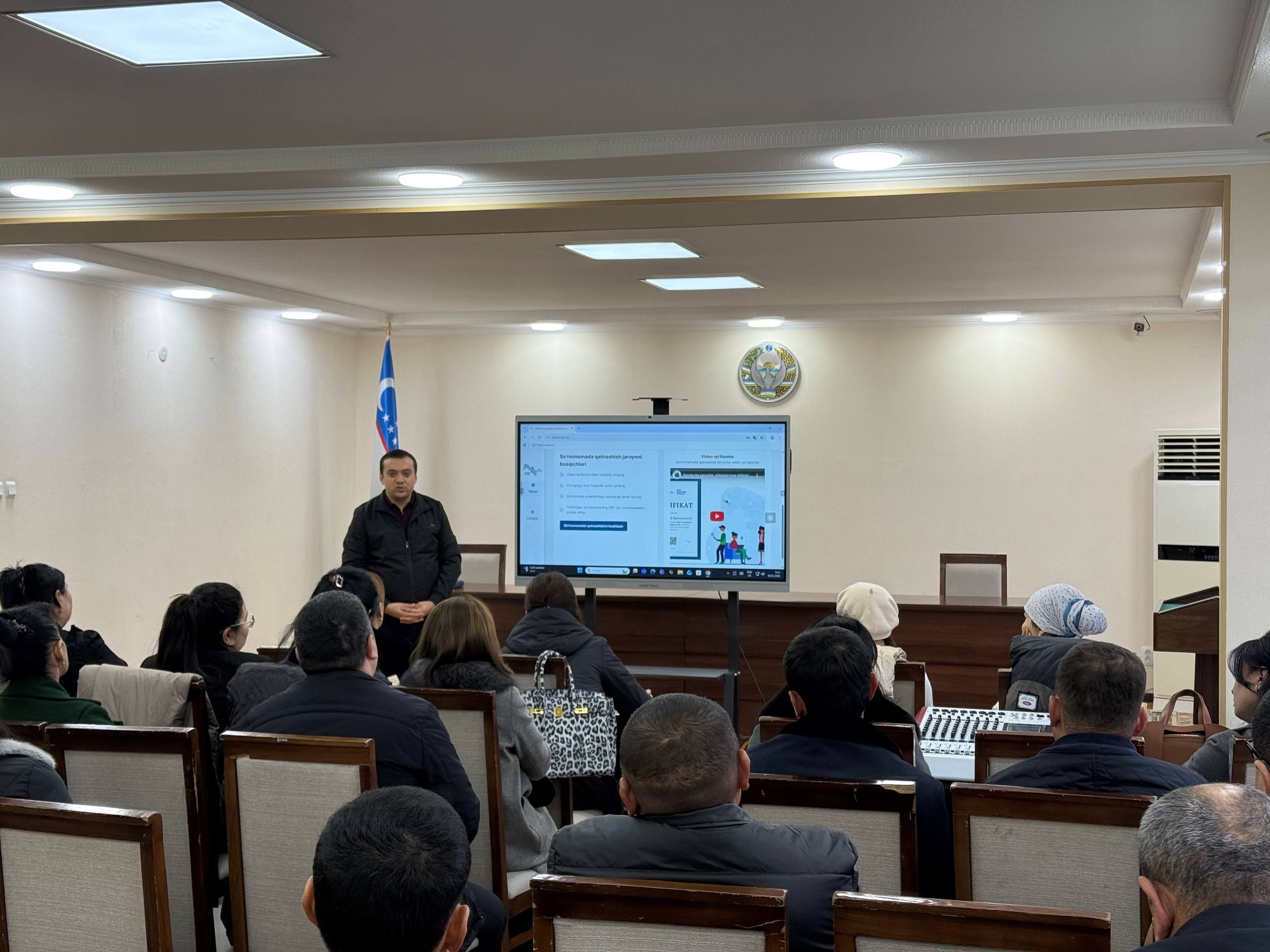Unda ro‘yxatga olish jarayonining maqsad va vazifalari, ro‘yxatga oluvchilar zimmasiga yuklatiladigan mas’uliyatlar, so‘rovnomalarni axborot texnologiyalaridan foydalangan holda to‘ldirish tartibi hamda savollarga to‘g‘ri va aniq yondashuv masalalari batafsil tushuntirildi.