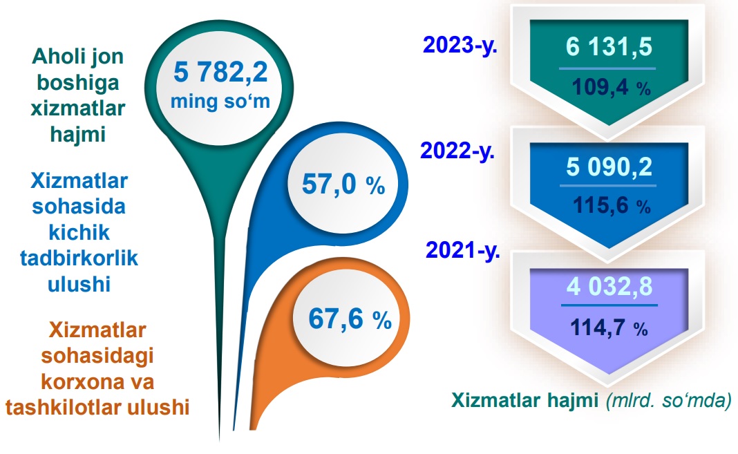 Xizmatlar sohasi – hududlar bo‘yicha ko‘rsatkichlar hajmi
