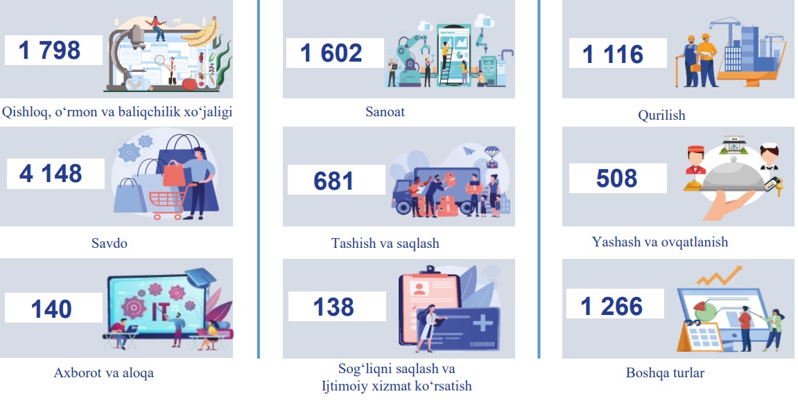 2023- yil 1- avgust holatiga ko‘ra Navoiy viloyatida faoliyat ko‘rsatayotgan 20 092 ta tijorat korxonalarining 11 397 tasi mas’uliyati cheklangan jamiyatlar hissasiga to‘g‘ri keladi. Mazkur jamiyatlar viloyatimizda tadbirkorlik faoliyatining eng keng tarqalgan shakli hisoblanadi. Ularning iqtisodiy faoliyat turlari bo‘yicha taqsimlanishi (umumiy sonidagi ulushi) qo‘yidagicha bo‘ldi: savdo – 36,4 foiz, qishloq, o‘rmon va baliqchilik xo‘jaligi – 15,8 foiz, sanoat – 14,1 foiz va qurilish – 9,8 foizni tashkil etdi.
