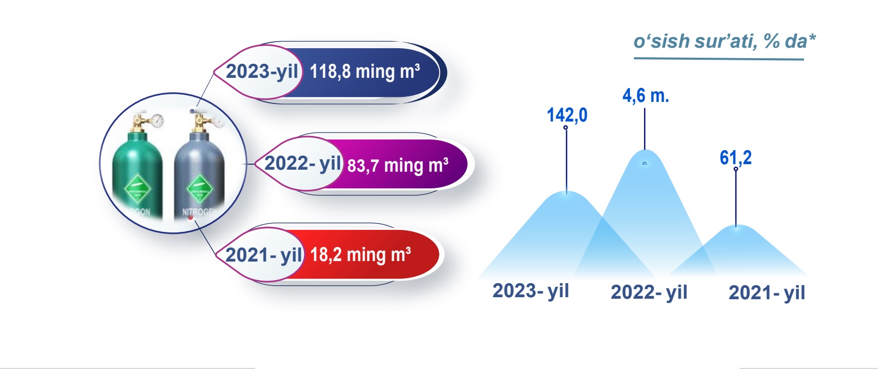 Navoiy viloyati bo'yicha qancha argon ishlab chiqarilgan?