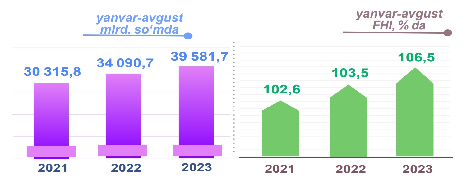 2023-yilning yanvar-avgust oylarida Navoiy viloyati bo’yicha ishlab chiqaradigan sanoat tarkibida metallurgiya sanoati hajmi 39 581,7 mlrd so‘mni tashkil etib, o‘tgan yilning tegishli davriga nisbatan fizik hajm indeksi 6,5 % ga oshdi va jami ishlab chiqariladigan sanoat hajmidagi ulushi 75,3 % ni tashkil etdi.