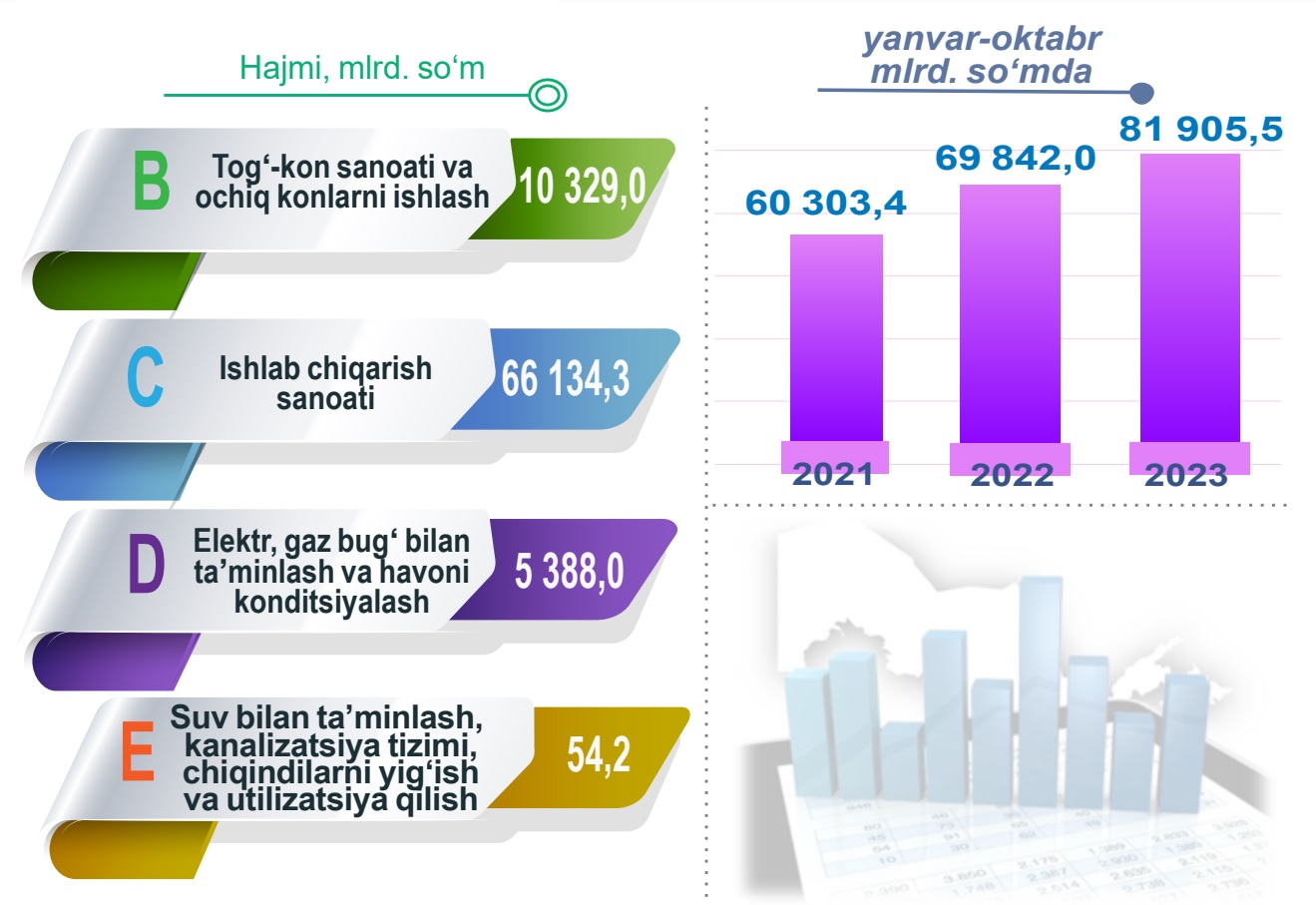 🏭 ishlab chiqarish sanoati - 66 134,3 mlrd. so‘m;