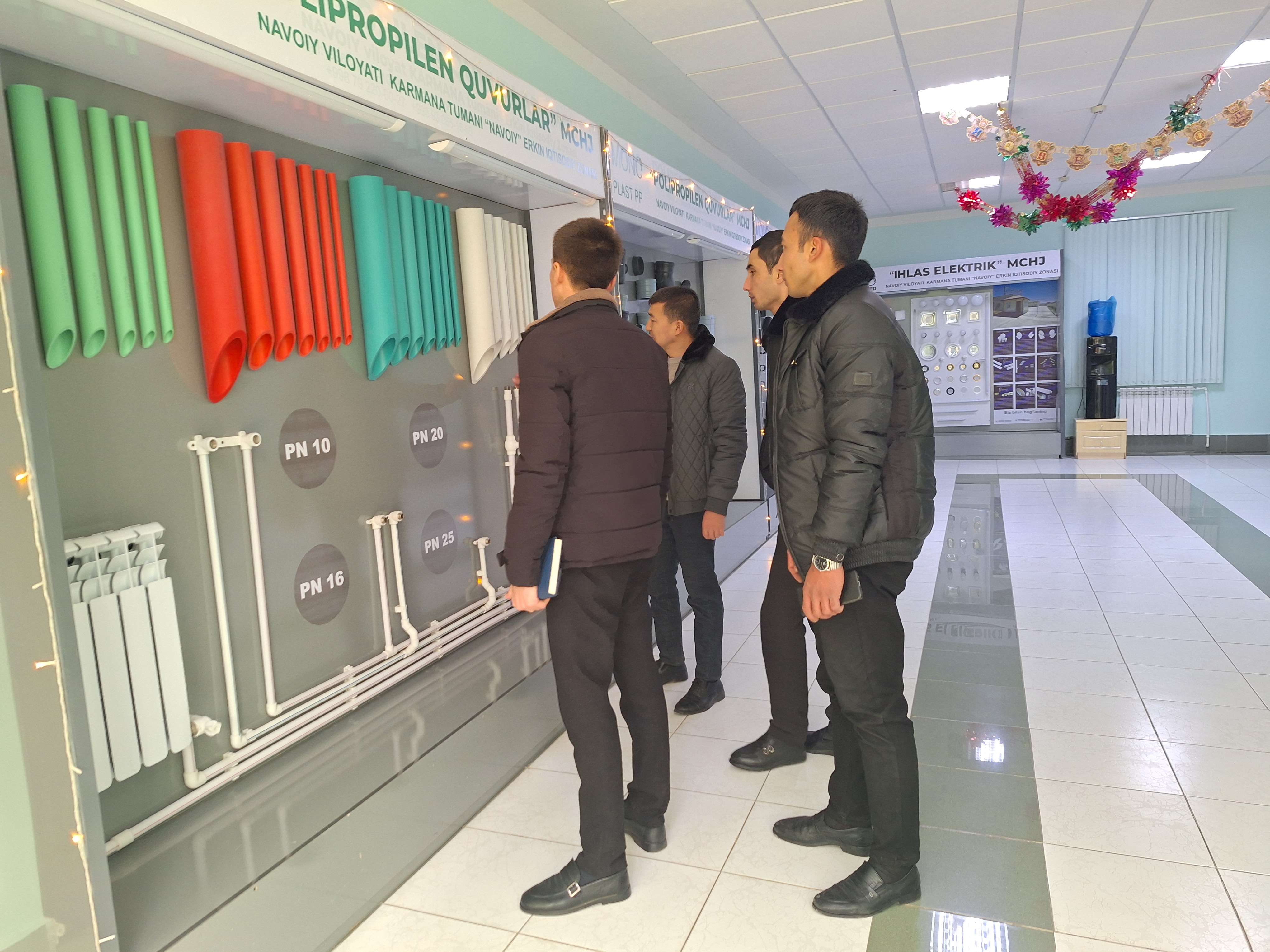 🔸Joriy yilning 21-dekabr kuni viloyat Statistika boshqarmasi yosh xodimlari uchun viloyatimizdagi “IHLAS ELEKTRIK” va “POLIPROPILEN QUVURLAR” MCHJlarning led energiya tejash lampalarini ishlab chiqarish jarayonlari hamda suv ta'minoti uchun ishlatiladigan polipropilen quvurlarining tayyorlanishi bilan yaqindan tanishish maqsadida majmualarda ekskursiya tashkil etildi.