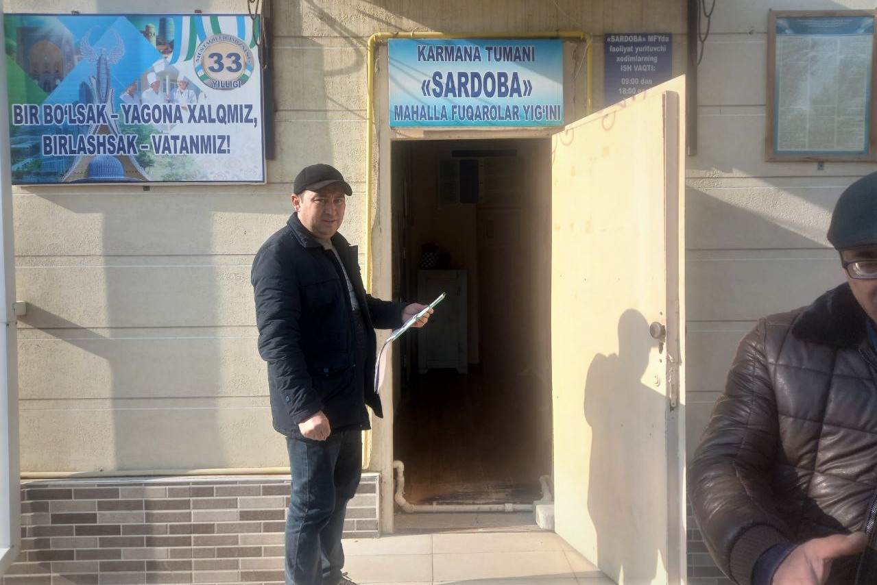 Navoiy viloyati statistika boshqarmasi mutaxassislari tomonidan Karmana tumanidagi “Sardoba” mahalla fuqarolar yigʻinida turar-joy va binolarning raqamlanganlik holati oʻrganildi.