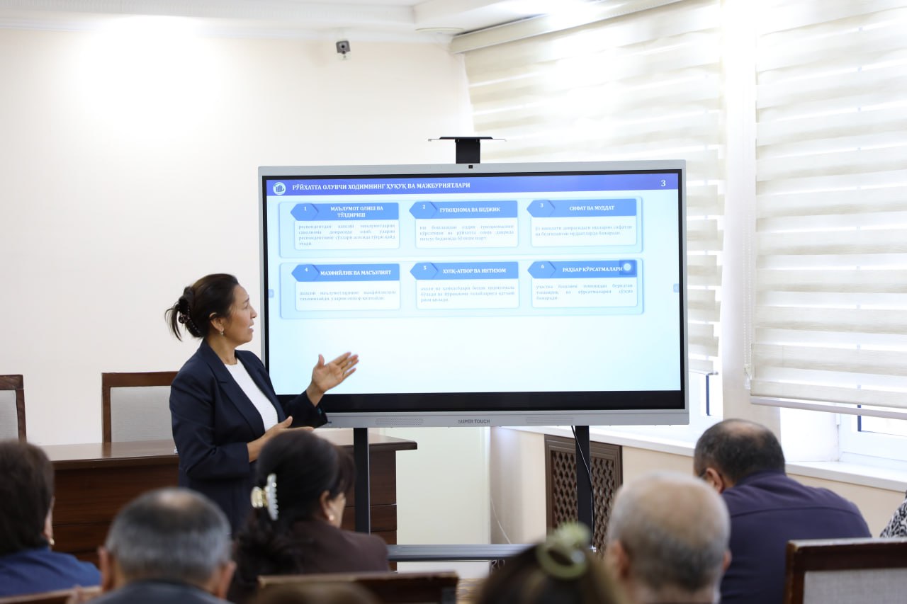 Amaliy mashg‘ulotlar davomida ro‘yxatga olish jarayonida uchrashi mumkin bo‘lgan holatlar bo‘yicha mutaxassislar tomonidan tushuntirishlar berilib, amaliy misollar asosida o‘rganildi.