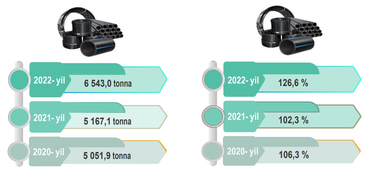 trubkalar va shlanglar ishlab chiqarildi, o‘tgan yilning mos davriga nisbatan 26,6 % ga ko‘paygan.