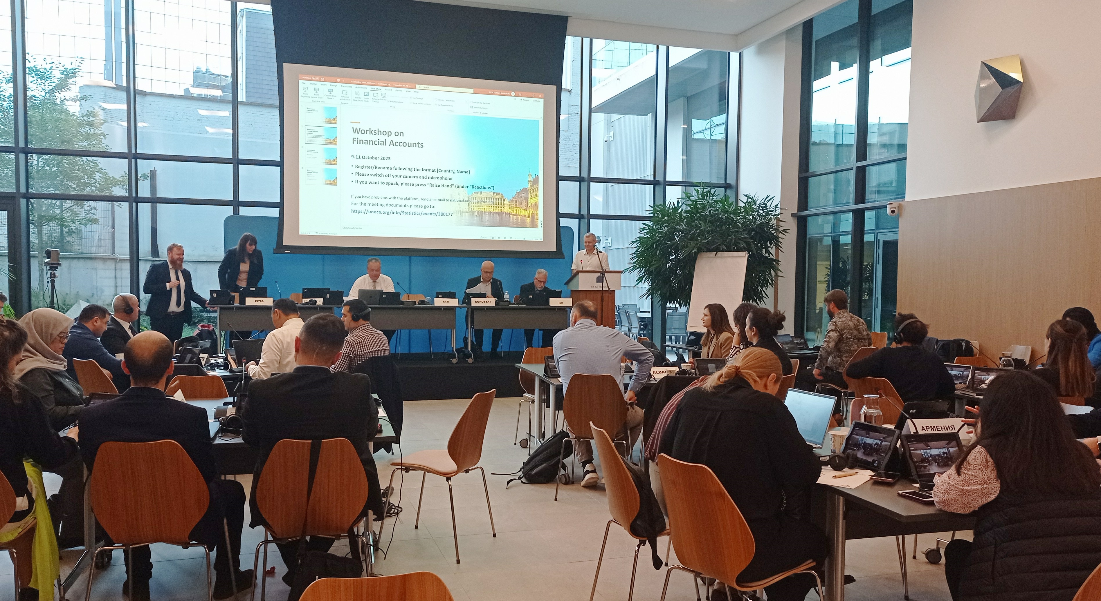 2023-yil 9–11-oktabr kunlari Belgiyaning Bryussel shahrida BMTning Yevropa iqtisodiy komissiyasi, Yevropa erkin savdo assotsiatsiyasi, Eurostat, Yevropa Markaziy banki va Xalqaro valyuta jamg'armasi hamkorligida moliyaviy hisoblar bo‘yicha seminar tashkil etildi.